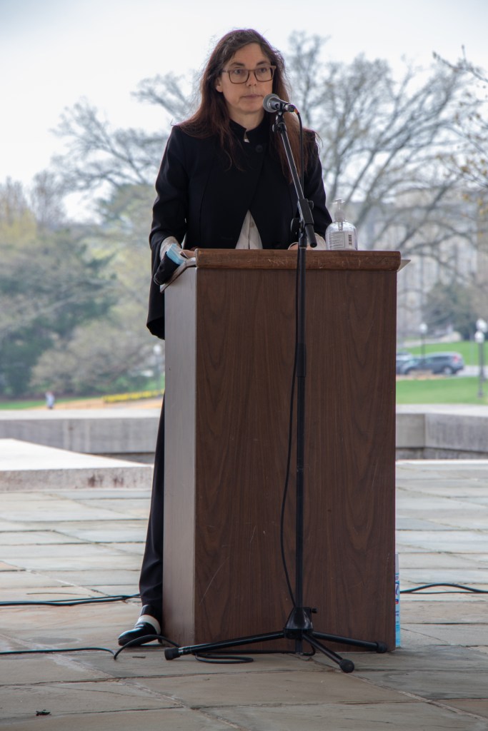 Morris Fliescher begins reading the names of the victims of The Holocaust in Blacksburg, Virginia, Friday, April 9, 2021.